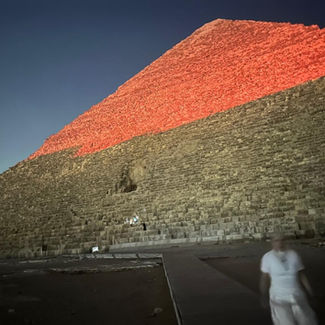 We get up early and head to the airport to fly back to Cairo. After arriving we go the check into the Hilton Heliopolis hotel. This was a long process and took hours waiting to get organized to be able to get into our rooms. We also had to wait for luggage as they took it by bus rather then on the plane with us. But all was worth the wait as was able to go get ready for the final dinner and back to the Great Pyramid for the final ceremony of which we were to all wear white. We went in two groups and I was glad I was in the first group since I had to leave at midnight for airport to start my flight back home. Dinner was good and I ate vegetarian the whole time in Egypt except for a few times when I ate fish on the cruise buffet. I am pescatarian which means I eat seafood but not land animals. Once or twice a year my body will crave beef and I will it eat some good bar-b-q brisket or a beef kabob when it does but only then and very rare. So after dinner we head back to the pyramid and again we are not allowed to take phones in as we have it rented privately for only our group after hours. Security took up the phones of anyone who had one to hold until afterwards. I had left mine on the bus as we had been told to do. This time we were allowed to go to the subterranean chamber first if we wanted to before going up to the queen or kings chamber. Joan who also is one of the guides from Portal to Ascension was going to have a meeting in the queens chamber for women only who preferred that or you could go on up the kings chamber were the Hartack’s were leading the meeting for all. To get to the subterranean chamber you had to climb down the ladder steps bent over and then literally crawl part of the way on your knees to get to it. I was glad I had and had some quite time just to reflect and pray and feel the Holy Spirit. It was only a small group that decided to go. After coming back up and everyone was headed to the other chambers I hear that I was not to go to either but that God had something special for me on the outside of the Pyramid. I was glad to hear this as it is also physically challenging to climb up to the Kings chamber. So I asked if I could just go outside and wait and the security guards were in front as well and told me just stay in front of the Pyramid as our permit does not allow us to go in private to the sides or back of it. As I started walking back down the steps to get to the bottom I would stop and sit and just sing quietly or talk to my best friend the Holy Spirit and then try to be quiet and listen. Eventually I got the surprise. Sitting their looking onto the city I could hear a sound starting to come together, it wasn’t just the mosque doing the prayers that they play at times throughout the day, or the traffic of the city, but all of it blending together and getting louder and louder into an angelic sound that shook my whole body. It was so beautiful and touching. I basked in the symphonic sound until it faded away. I have never experienced this before. I could then again just hear the normal sounds of the city. I now really want to study more about the sounds and their meanings and which each can do after this experience and learning a few days back about the building at the temple of the harmonic sounds each for a different healing. I wish I had my phone and had been able to record this beautiful noise my ears were blessed to hear. With all the talk about not finding the tools they could have used to build these pyramids and the agony in which to try to duplicate today even, it is my belief that they used levitation in their minds to move all the heavy pieces that today we still can’t figure out how they did it. Jesus tells us we can move mountains if we have the faith. Matthew 17:20 (NASB) 20 And He said to them, “Because of your meager faith; for truly I say to you, if you have faith [a]the size of a mustard seed, you will say to this mountain, ‘Move from here to there,’ and it will move; and nothing will be impossible for you. ”Anyways everyone was coming out now so back on the bus and back to the hotel to get ready to leave. I was able to get my phone off the bus and ran to snap a few pictures real quick and run back to the bus as almost last one out now. I don't remember seeing the pyramids being red but the pictures show the tops red somehow. Oh well, just reminds me of the blood of Jesus that takes away my sin !!